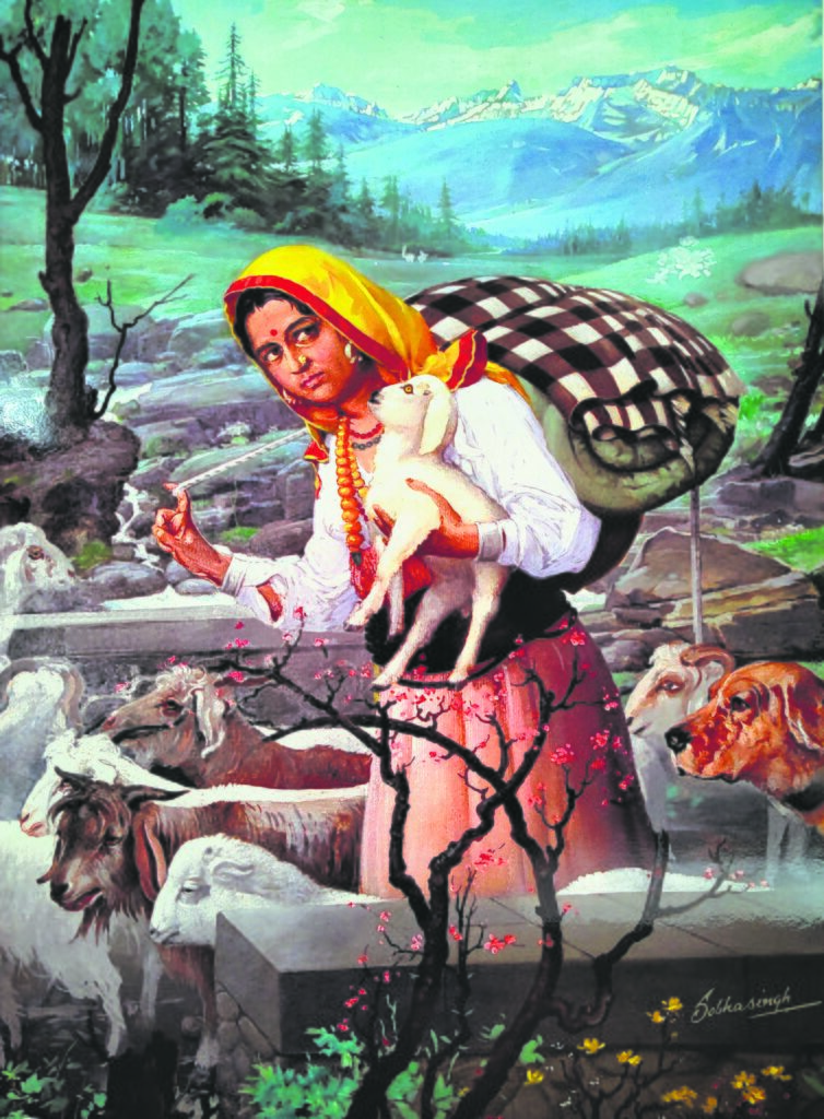 Ballads such as ‘Kaali ghagri le aayaan o’ (Bring me the black skirt), ‘Kaaliye koyle bol savera’ (The black koel inaugurates the morning), and ‘Koonja udiyaan jayi peyan’ (The cormorants fly over) evocatively imagine birds like crows, cuckoos and cormorants as messengers and metaphors of communication between lovers and relatives. Since a number of these songs were composed at a time when modern transport was still a distant possibility, not to mention the treacherousness of undulating topographies itself, the idea of long distances acquired a poetically poignant tone. In turn, feathered creatures evolved into symbols of connections and vectors of relationality. Sometimes, a solitary human would also don this role. Thus, a Gaddi favourite such as ‘Jug jiyo dhaare re o Gujjaro’ (Bless you, the mountain-roving Gujjar) commemorates a generic pastoralist of the Gujjar community (another tribe residing in the Himalayas of both Himachal and Uttarakhand), where a housewife appeals to the shepherd to convey her message to her lover working in the remote highlands.